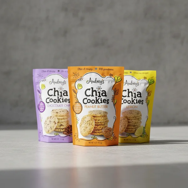 Resealable stand-up pouches are ideal for maintaining freshness in retail environments. They are durable and convenient for storing multiple cookies.